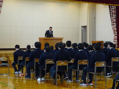1月13日(火)に3学期始業式を行いました。20日間の冬季休業を終え、生徒の皆さんは元気に登校し、真剣な姿で式に臨む姿が見られました。