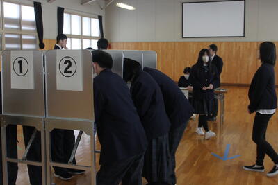 演説会後は、明心館にて実際の選挙に近い形で選挙を行い、選挙権を得たときの練習にもなりました。