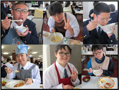 先日の「学校給食試食会」では、生徒のみなさんが考案した献立を保護者のみなさんにも味わっていただきとても好評でした。